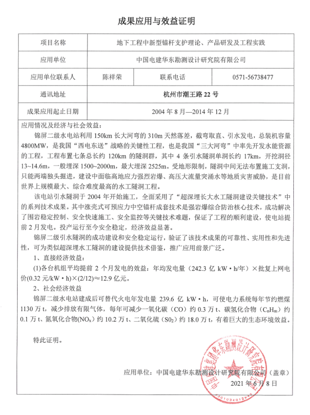 公司成立至今,已擁有自主專利40余項。企業榮獲國家、省級和專業學會等多項殊榮。先后主持、參與編寫7部標準國家及行業標準,更成為行業中首家擁有省級院士工作站的中國錨固事業的領頭羊企業。